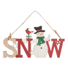 Karácsonyi dekoráció fából, "Snow" felirattal és aranyos hóember mintával. Madzag akasztójának köszönhetően akár ajtódíszként is funkcionálhat, de lakása bármely helységében elhelyezheti. Előnyök: Festett fa Természetes hatás Madzaggal akasztható Forma: hóember