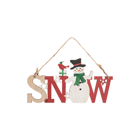 Karácsonyi dekoráció fából, "Snow" felirattal és aranyos hóember mintával. Madzag akasztójának köszönhetően akár ajtódíszként is funkcionálhat, de lakása bármely helységében elhelyezheti. Előnyök: Festett fa Természetes hatás Madzaggal akasztható Forma: hóember