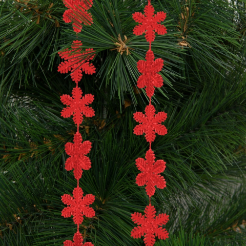 1 kép FAMILY CHRISTMAS 58616A Karácsonyi girland - hópehely - 2,7 m - piros
