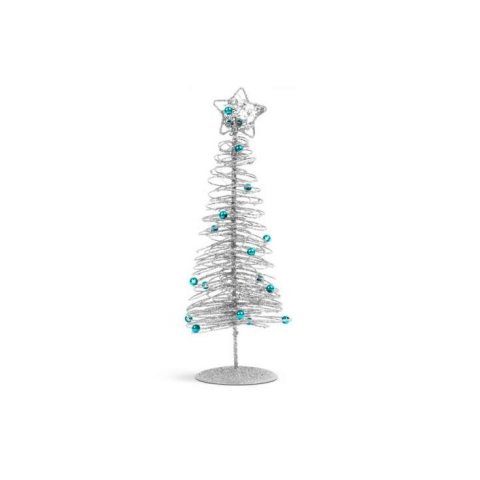 Karácsonyi, glitteres, fém karácsonyfa - 28 cm - ezüst Díszítse otthonát, irodáját a szeretet ünnepén asztalra helyezhető mini karácsonyfával. Formás, karcsú alakjával nem foglal sok helyet az asztalon, mégis meghitt, karácsonyi hangulatot áraszt.