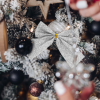1 kép FAMILY CHRISTMAS 58640C Karácsonyi dísz - glitteres masni szett - ezüst - 12 db / csomag