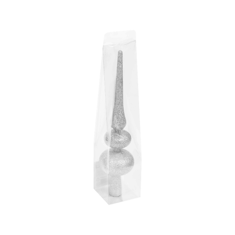 1 kép FAMILY CHRISTMAS Karácsonyfa csúcsdísz, ezüst, glitteres, 30 x 7 cm (58780B)