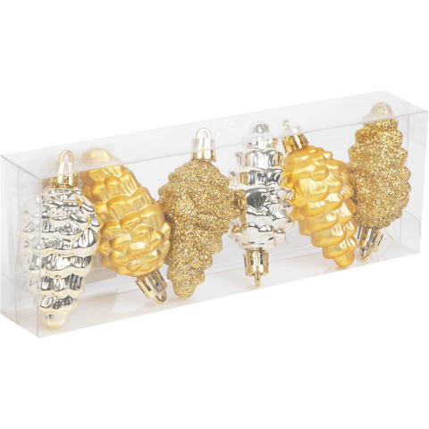 1 kép FAMILY CHRISTMAS Karácsonyfadísz szett, arany toboz, 6 cm, db / szett (58784A)