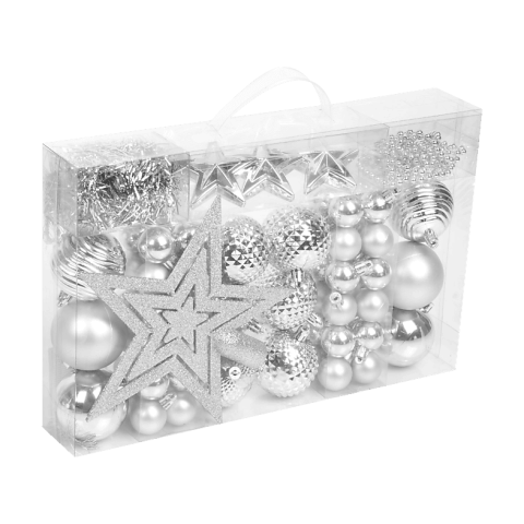 1 kép FAMILY CHRISTMAS Karácsonyfadísz szett, ezüst, 66 részes (58774C)
