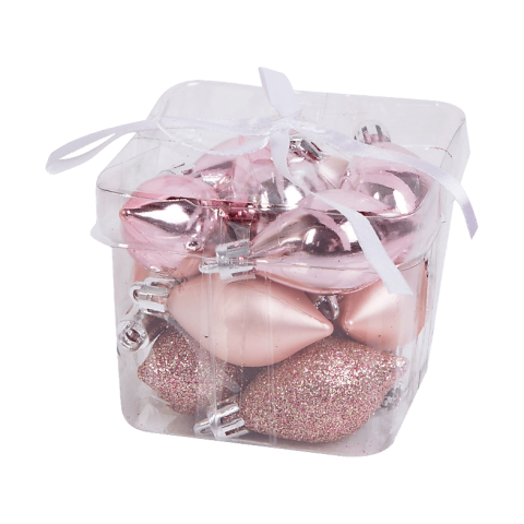 1 kép FAMILY CHRISTMAS Karácsonyfadísz szett, rozéarany, 14 db / szett (58770)