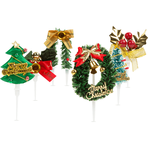 Karácsonyi sütemények, torták díszítésére alkalmas tortadekorok, feltétek. Egyszerűen leszúrhatóak a tortába, a hosszú leszúrótüskének köszönhetően stabilan áll. 2 féle csomagösszeállítás Minden csomagban 3 féle dekoráció Kedves karácsonyi motívumok Stílusos megjelenés Boldog Karácsonyt felirat