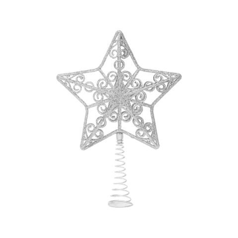 1 kép FAMILY CHRISTMAS Karácsonyi dísz - csillag csúcsdísz 20,5 x 14,5 cm ezüst