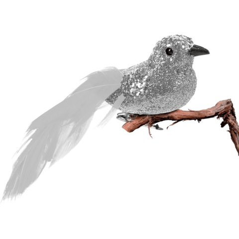 1 kép FAMILY CHRISTMAS Karácsonyi dísz - csipeszes glitteres madár ezüst 2 db / csomag