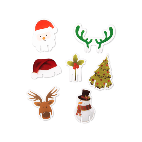 Ez a poharakra rakható papír dekoráció számos vidám és aranyos, karácsonyi figura formájában érhető el, köztük mikulás, hóember, rénszarvas és agancs motívumokkal. A dekorációk kiváló minőségű papírból készültek, amelyek könnyen hajlíthatóak és illeszthetőek a poharakra, anélkül hogy karcolást okoznának. A hátoldala a papíroknak írható, így mindenki ráírhatja a saját nevét, ezáltal könnyen azonosítható, hogy melyik pohár kié.