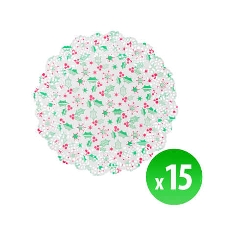 Papírból készült tányéralátét, amellyel egyszerűen megteremtheti az ünnepi hangulatot. A szett 15 tányéralátétet tartalmaz, melyek karácsonyi fagyöngy motívumokkal vannak díszítve. Előnyök: Lézervágott, színes felület Egyszer használatos Nem mosható