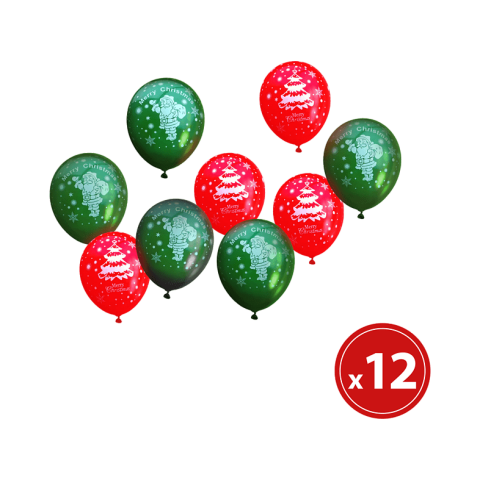 1 kép FAMILY CHRISTMAS Lufi szett - piros-zöld, karácsonyi motívumokkal 12 db / csomag