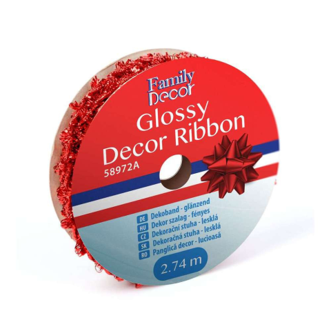 Dekor szalag - fényes - 2,74 m - piros Alkalmas lehet virágok, ajándékok kötésére vagy egyedi, kreatív dekorációk készítésekor. A szalag hajlékony, jól formázható, korlátozottan nyúlik. A csillogó színek egyedi és vidám megjelenést kölcsönöznek ajándék