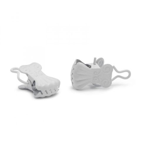 Díszcsipesz fehér 10 db / csomag Kampós díszcsipesz függönyökhöz. A fehér fém csipesz elegánsá teszi a fehérszín harmóniát. Nem üt el a fehér karnistól vagy a fehér függönytől. Görgő nélkül. Csipesz mérete: 2 cm Szín: fehér Tartalma: 10 db
