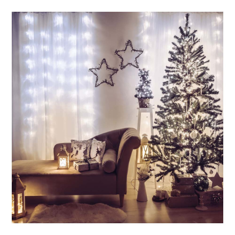 Fényfüggöny - 200 db LED - középfehér - hálózati - IP44 - 4,2 m - 8 program Díszítse otthonát középfehér, LED fényfüzérrel! A 4,2 méteres kábelhosszal és a nagy LED-számmal ideális lehet karácsonyfák, lakások, különböző helységek és kültéri homlokzatok