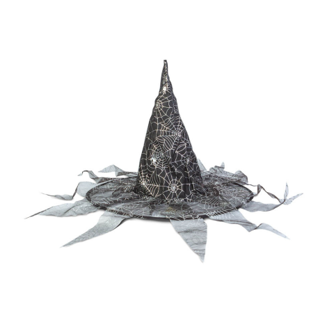 Family Halloween-i boszorkány kalap - fekete, pókhálós - 38 x 32 cm