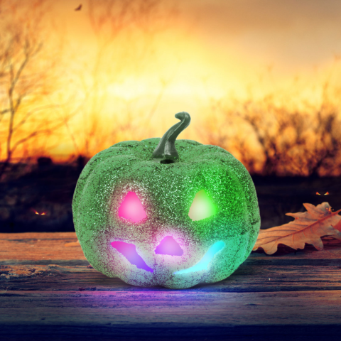 Csillogó, glitteres borítással rendelkező csodaszép dekor tökök. A beépített, RGB LED világítás színes fénnyel világítja meg a tök belsejét, ezzel keltve hagyományos faragott tök illúzióját. Felhasználásuknak csak a képzelete szab határt, kiváló díszítő eszköze az őszi, szürke hétköznapoknak, használhatja kompozíciók részeként, de önmagukban is megállják a helyüket polcon vagy asztali díszként.