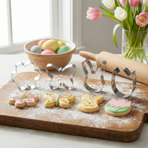 Family Húsvéti sütikiszúró - vegyes forma - 4 db / csomag, 57955Készítse el a legvidámabb húsvéti süteményeket ezzel a praktikus sütikiszúró szettel A csomag 4 darab fémből készült kiszúrót tartalmaz, különböző húsvéti formákkal nyuszi, pillangó, virág és tojás. A rozsdamentes fém kivitel tartósságot biztosít, így a formák hosszú ideig használhatók. Ideális választás sütemények, mézeskalácsok vagy akár fondant és egyéb desszertek díszítésére