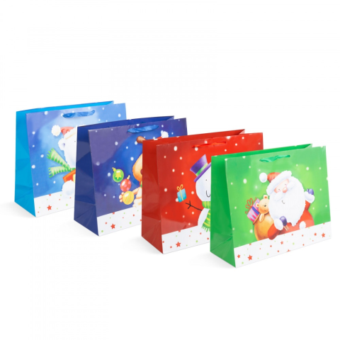 Karácsonyi ajándéktasak, szalag füllel, 4 féle minta, 406 x 160 x 330 mm, 1 db