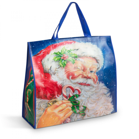 Karácsonyi ajándéktáska, nagyméretű, 50 x 44 x 18 cm, mikulás minta, 1 db
