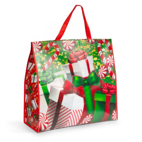 Karácsonyi ajándéktáska, nagyméretű, 50 x 44 x 18 cm, ajándékos minta, 1 db