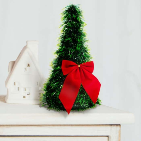 Karácsonyi, asztali műfenyő - zöld - 2 piros masnival - 26 cm Díszítse otthonát, irodáját a szeretet ünnepén is. Ha nappalija nem elég nagy egy valódi karácsonyfának, az asztalra helyezhető mini műfenyő tökéletes alternatíva lehet. Formás, karcsú alakj
