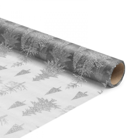 Karácsonyi asztalterítő futó - szürke / ezüst - 180 x 28 cm