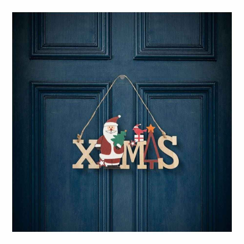 Karácsonyi dekor fából - mikulásos - akasztóval - 17 x 9 cm Karácsonyi dekoráció fából, XMAS felirattal és aranyos mikulás mintával. Madzag akasztójának köszönhetően akár ajtódíszként is funkcionálhat, de lakása bármely helységében elhelyezheti. Fes