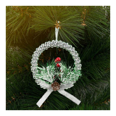 1 kép Family Karácsonyi dekoráció - akasztható - ezüst koszorú - 10 cm