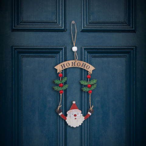 Karácsonyi dekoráció - Fa, mikulás - 13 x 17 cm Ez a gyönyörű fából készült Mikulás figura tökéletes kiegészítője lehet a karácsonyi dekorációnak otthonában. A figura egy szépen kidolgozott Mikulás alak, amely bogyókkal és HoHoHo felirattal van díszítv