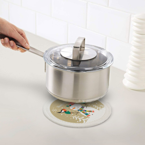 Textilből készült, karácsonyi edényalátét, amely megakadályozza, hogy károsodjon asztala, pultja a forró edények hatására. Az alátét beleillik az ünnepi asztali dekorációba, így teljes lehet az összhang.