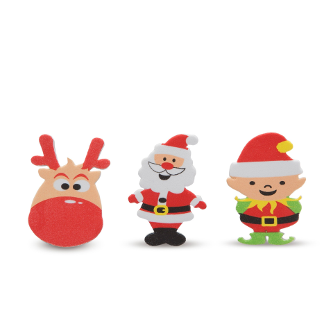 Négyféle karácsonyi figurát tartalmazó habmatrica csomag. Dekorációnak, csomagolásokra kitűnő választás. Formák: mikulás, manó, rénszarvasfej Méret: 5 cm