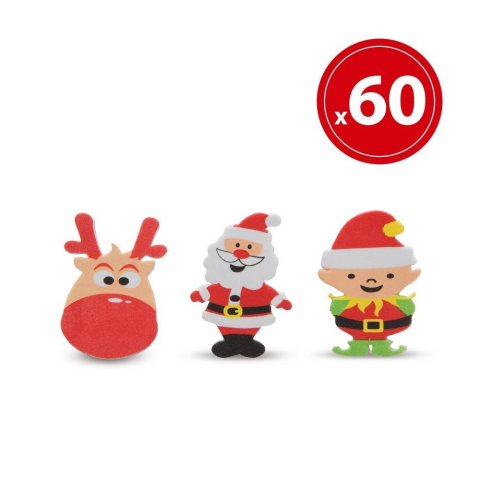 Karácsonyi habmatrica mikulás 60 db / csomag Négyféle karácsonyi figurát tartalmazó habmatrica csomag. Dekorációnak, csomagolásokra kitűnő választás. Formák: mikulás, manó, rénszarvasfej Méret: 5 cm