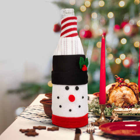 Karácsonyi italos üveg dekor - 3D hóember - poliészter - 27 x 12 cm