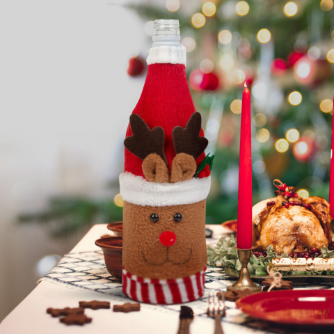 Karácsonyi italos üveg dekor - 3D rénszarvas - poliészter - 27 x 12 cm