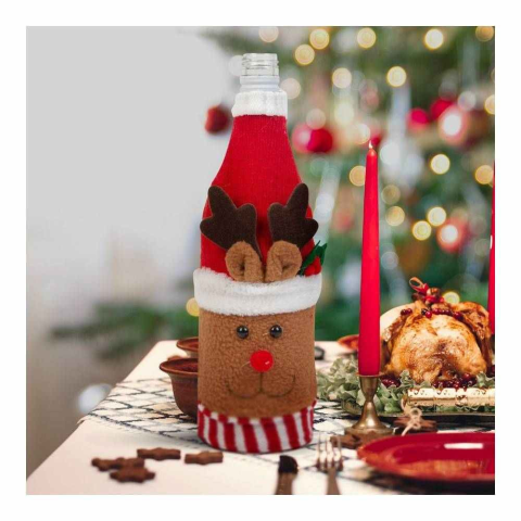Karácsonyi italos üveg dekor - 3D rénszarvas - poliészter - 27 x 12 cm Adja át karácsonyi ajándékát stílusosan, karácsonyi ruhába öltöztetve. Az italos üvegekre nyakára húzza rá a karácsonyi figurával ellátott dekorációt, garantáltan emlékezetes lesz a
