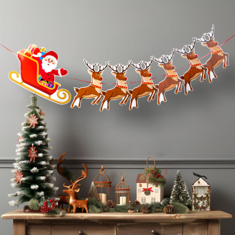 Family Karácsonyi papír girland - 6+1 db Mikulás szán - 3,5 m