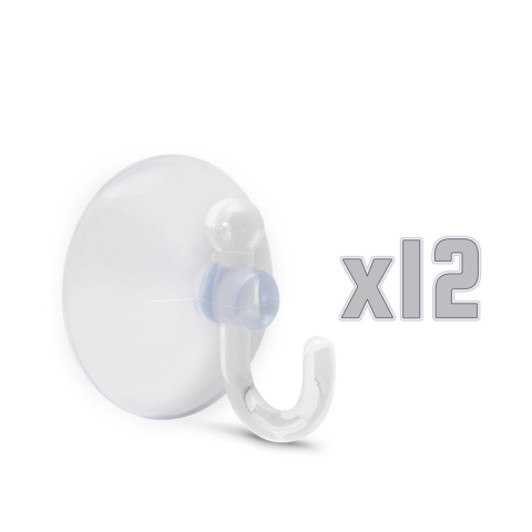 Tapadókorongos fali akasztó - 12 db / bliszter 12 darabos akasztó szett, mely tapadókorongos hátuljának köszönhetően stabilan fennmarad a síkfelületeken. Tartalma: 12 db Átmérő: 4 cm Kampó mérete: ~ 2 cm Anyaga: PVC Szín: