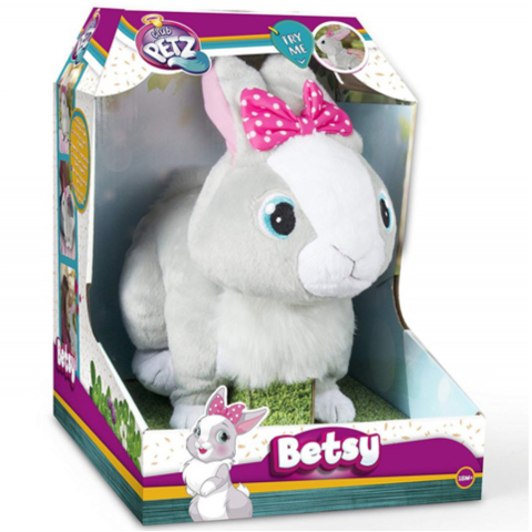 Ez a cuki plüss nyuszi biztos, hogy minden gyereket levesz a lábáról, és első pillantásra a szívükbe zárják, különösen, ha észre veszik, hogy Betsy mindenhova követni fogja őket! A Betsy interaktív nyuszi plüssfigura egy nagyon puha, selymes és kellemes tapintású plüssel beborított nyúl. Rózsaszín, pöttyös masnival a fülei között, kék szemeivel és puha bundájával