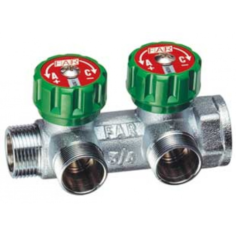Far osztó szelepes 2 körös 1' menettel 3/4' eurokónuszos csatlakozóval hűtési vagy fűtési rendszerhez. Kiváló olasz minőség.