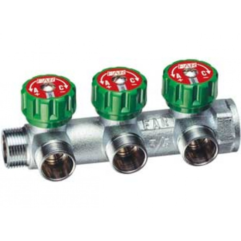 Far Osztó Szelepes 3 körös 1' menettel 3/4' Eurokónuszos csatlakozóval hűtési vagy fűtési rendszerhez. Kiváló olasz minőség.