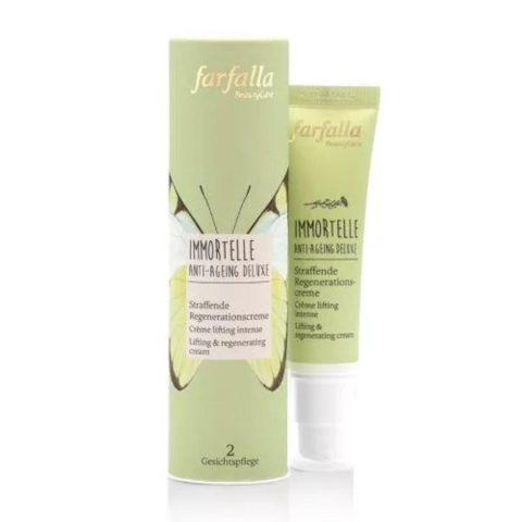 Farfalla Immortelle Anti-ageing éjszakai arcápoló folyadék, 30 ml- Könnyű öregedésgátló éjszakai ápolóként magas hatóanyag-tartalommal- Lélegezni hagyja a bőrt és támogatja az éjszakai regenerációs fázist- A „halhatatlan” immortelle illóolaja, valamint a növényi alapú hialuronsav és immortelle gondoskodik a rugalmasságról és a feszes kontúrokról reggelreKiszerelés: 30 ml