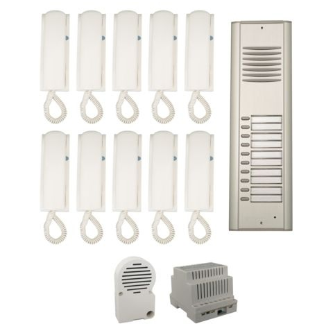 ACI FARFISA Kaputelefon szett, 4+1 vezetékes, 10 lakásos, Project-ErreP/R széria, süllyesztett kültérivel, 10xPT524SW, RP10+MD30, PRS220 egységekből