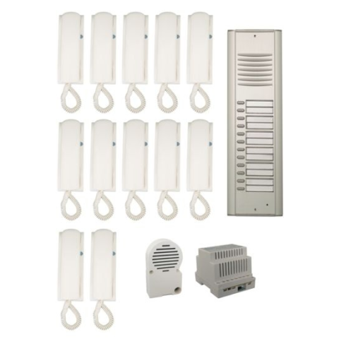 ACI FARFISA Kaputelefon szett, 4+1 vezetékes, 12 lakásos, Project-ErreP/R széria, süllyesztett kültérivel, 12xPT524SW, RP12+MD30, PRS220 egységekből