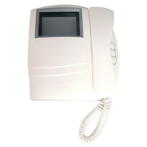 ACI FARFISA COMPACT Video beltéri egység, koax kábeles rendszerhez, fehér felületre szerelhető ház fehér hallgatóval, fekete-fehér kijelző, 3 gomb
