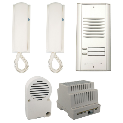 FARFISA Kaputelefon szett, 2 lakásos, audiós, 4+1 vezetékes, Project-ErreP/R széria, süllyesztett kültérivel, 2xPT524SW, RP2+MD30, PRS220 egységekbőlEnglish: