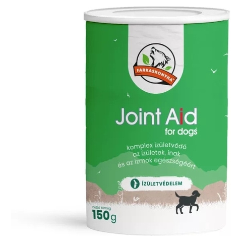 Farkaskonyha Joint Aid komplex ízületvédő az ízületek, inak és az izmok egészségéért. Akkor ajánljuk, ha kedvenced nehezen mozog, csípő, könyök vállízületi diszpláziás, sérülést, sportsérülést szenvedett, vagy egészséges, de teljeskörűen támogatnád ízületeit. Támogatja a kölyökkutyák ízületeinek fejlődését. Artrózis, arthritis esetén, traumát követően, idősebb életkorban elősegíti az ízületek, inak, porcok és az izmok egészségének