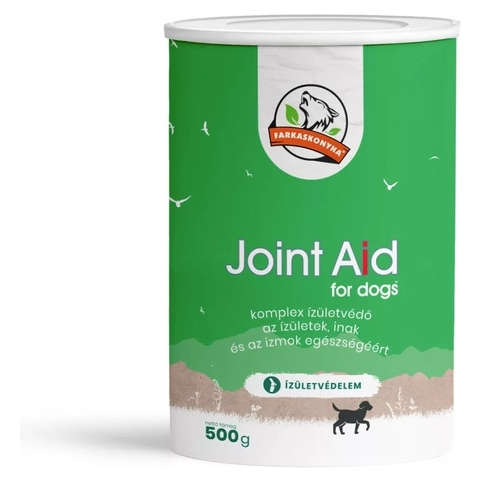 Farkaskonyha Joint Aid komplex ízületvédő az ízületek, inak és az izmok egészségéért. Akkor ajánljuk, ha kedvenced nehezen mozog, csípő, könyök vállízületi diszpláziás, sérülést, sportsérülést szenvedett, vagy egészséges, de teljeskörűen támogatnád ízületeit. Támogatja a kölyökkutyák ízületeinek fejlődését. Artrózis, arthritis esetén, traumát követően, idősebb életkorban elősegíti az ízületek, inak, porcok és az izmok egészségének
