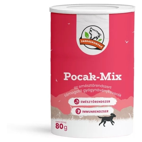 Farkaskonyha Pocak-Mix az emésztőrendszert támogató gyógynövénykeverék. Érzékeny emésztés, étrendváltás, környezetváltozás, utazás alkalmával, valamint féreghajtás és gyógyszeres kezelések után támogatást igénylő emésztőrendszer esetén ajánlott gyógynövénymix kutyáknak.