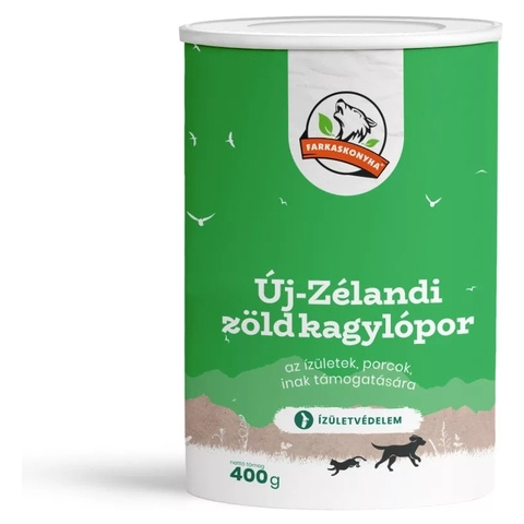 Farkaskonyha Új-Zélandi zöldkaylópor az ízületek, porcok, inak támogatására. Magas biohasznosulású teljes, nem zsírtalanított zöldkagylópor 2,8-4% közötti glükozaminoglikán (GAG) tartalommal kutyáknak és cicáknak. Már kölyökkortól célszerű vele kiegészíteni az étrendet. Támogatja az ízületi porcok tápanyagellátását, elősegíti a porcképződést és az ízületekben lévő szinoviális folyadék képződését.
