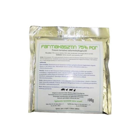 Jellemzők: - A Farmakasztin 75% szelídgesztenyefa (Castanea sativa) természetes eljárással készült kivonata. - Használatával javul a testtömeg gyarapodása és a takarmányhasznosulás. Kérődzők: Elválasztott borjak hasmenéses kórképei előfordulásakor takarmány-adalékanyagként (tejpótló tápszerre való áttérés után). Takarmányba keverve javítja a fehérjefelszívódást és a takarmányhasznosulást. Baromfi: Tartási és takarmányozási hibák kártételének cs